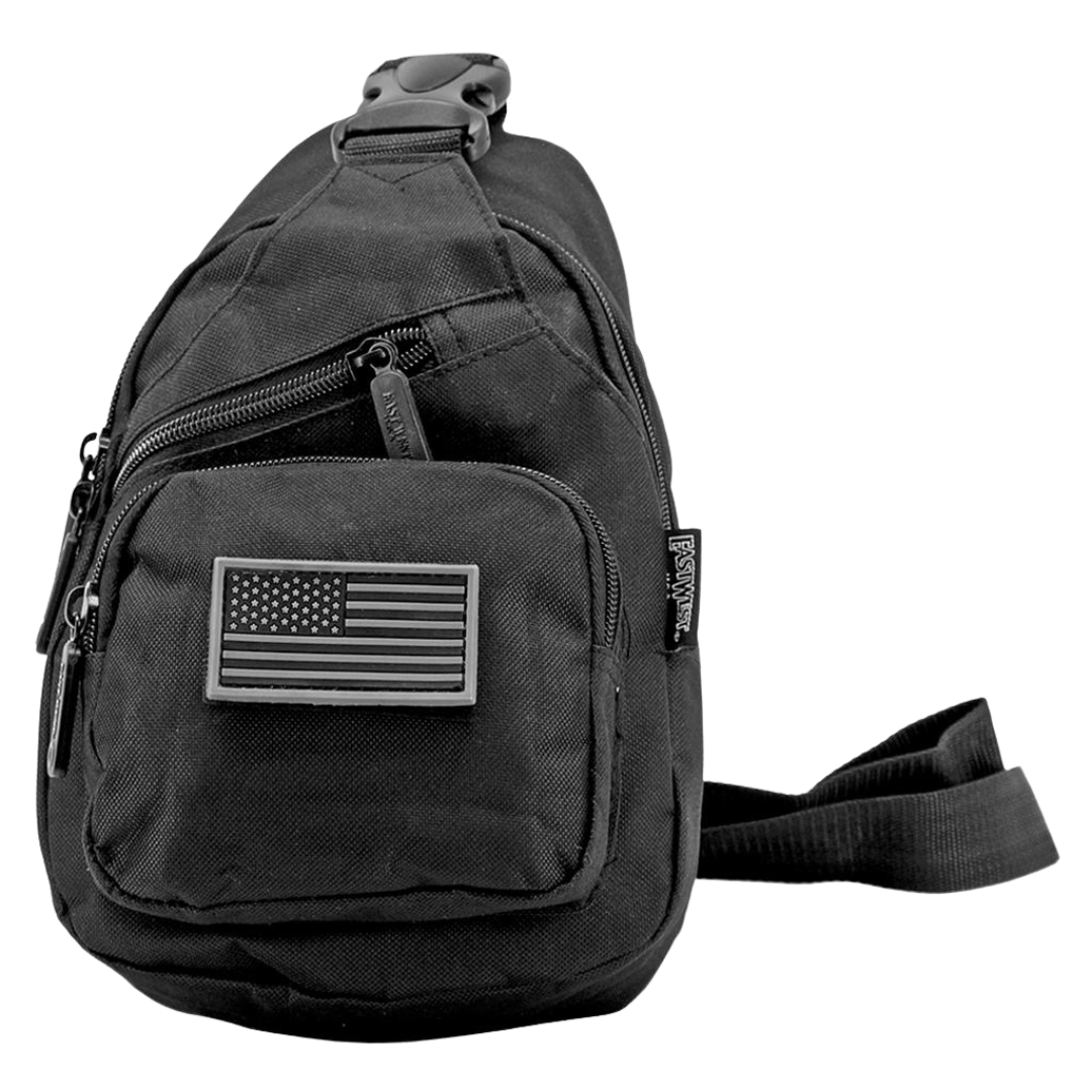 The StealthOps Tactical Sling Bag is built for rugged utility and everyday carry, featuring water-resistant 600 Denier polyester fabric with a durable PVC coating. Precision zippers with rubber pulls ensure smooth access to the bag’s compartments, while two smaller sections provide efficient organization for your gear. The adjustable shoulder sling strap offers customized comfort, and the bag is equipped with a rubber U.S. Flag patch for added style. Compact yet functional, the StealthOps is the ideal companion for military personnel, outdoor adventurers, or anyone needing a reliable, tactical side bag.