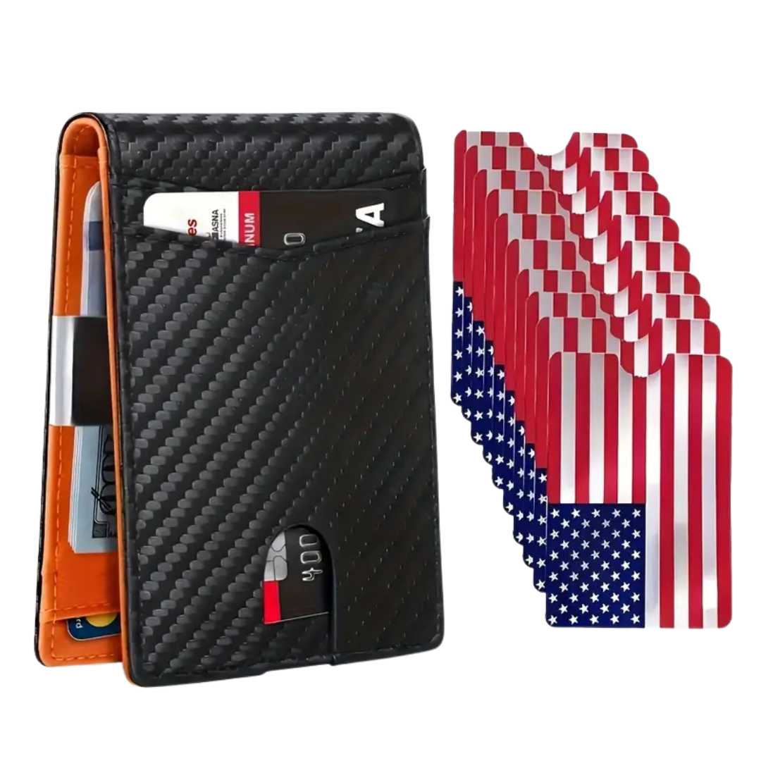 Each wallet includes 10 RFID-blocking card sleeves featuring a high-quality printed American flag design. These sleeves provide an added layer of protection for your contactless cards while allowing you to show off American pride every time you open your wallet. Use them to safeguard credit cards, ID, or transit passes from skimming without sacrificing visual appeal or function.